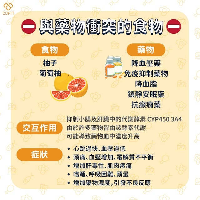 相信在這段時間大家都有注意到柚子要與某些藥物避開,食物對藥物的影響有干擾吸收、分佈、代謝、排除或藥理加成、拮抗作用,其中以影響吸收及代謝最為常見。除了柚子會與藥物有交互作用,飲食上還有以下幾種需要注意:
