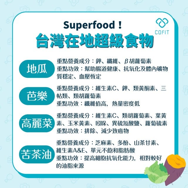 除了藍莓、綠花椰、羽衣甘藍等……等風靡歐美的超級食物,台灣當然也有在地的超級食物!以下介紹四種常見的本土食材都是具有超級食物的功效,非常推薦加日日常的菜單中。
