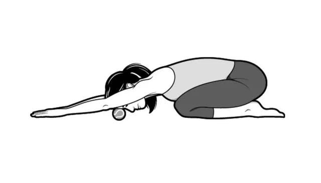 拉伸身體輕輕伸展臀部的嬰兒式,可以釋放背部和肩膀的緊張感以及整體舒緩效果。深呼吸並將臀部向後坐在腳後跟,胸部向下壓靠近大腿,盡可能地將膝蓋盡分開;把手伸到你面前,伸展手臂,你的額頭可以放在地面上,或請網球或按摩球放在額頭下方按摩,然後輕輕地左右滾動,這個動作會刺激一些穴道可消除神經緊張。