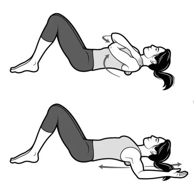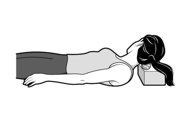 有助於緩解頸部緊張並刺激影響睡眠和情緒的迷走神經。身體仰臥並將瑜伽磚或厚書放在頭下,頭向右轉時將球放在耳後的上頸部,維持動作做五次深呼吸。然後輕輕做點頭三至四次,搖頭動作三四次,再換邊繼續動作。
