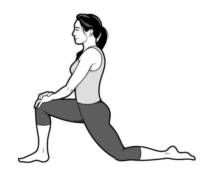 此動作是要伸展作為連接脊柱和腿部的核心中,最深的肌肉“腰大肌”,當我們走路或跑步時,都是夠過腰大肌來幫助我們向前移動,腰大肌也為支撐內部器官並連接到橫膈膜,並直接影響我們的呼吸。放鬆腰大肌可以讓我們進行更深的橫膈膜呼吸。