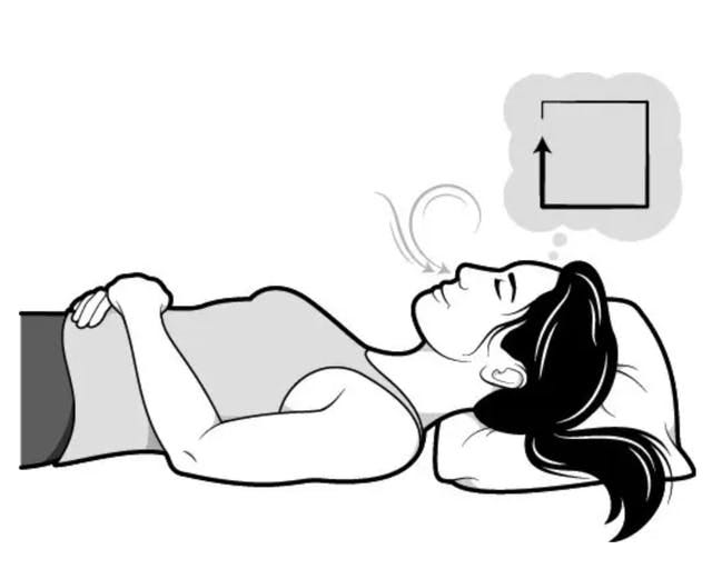英文 Box breathing 或 Square breathing,也稱 4–4–4 呼吸法。通常用於冥想,是對抗焦慮症狀的強大工具,有助於體內回復正常機能,把絮亂的呼吸模式與節奏調回自然狀態。躺在床上或是軀幹打直坐著,透過鼻子呼吸約 30 秒,接著更有意識地用鼻子呼吸。輕輕捏住鼻子,保持嘴巴閉上,直到你需要再次呼吸為止。閉上雙眼,透過鼻子慢慢吸氣 4 秒鐘。屏住呼吸 4 秒鐘。此時嘴巴不需用力緊閉、鼻孔也不需施力。用嘴巴吐氣 4 秒鐘,確保所有氣體從肺部排出。屏住呼吸 4 秒鐘。可視需求重複上述步驟數次,一般來說,重複做到 4 分鐘就能發揮鎮定效果。