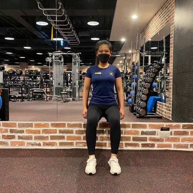 背部貼直靠牆,腳往前站約2至3步。背部保持挺直的狀態,腹肌保持緊縮、頭部向前看,接著彎曲膝關節與髖關節來到90度,大腿與地面平行,與小腿垂直。撐住這個姿勢10秒,接著回到原位休息10秒鐘,以進行10組循環為目標。
