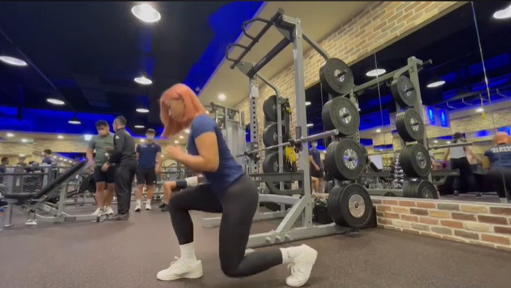 起身站立 ,雙腳打開與骨盆同寬 ,雙手放在腰部或胸前。一條腿往後跨 ,後腳腳跟離地 ,此為起始姿勢 ,將重心維持在中間,下蹲至雙腿都屈膝呈90 度 ,後腳膝蓋保持微微離地 ,軀幹保持直立 。臀肌收緊 ,前後腳同時發力來回到起始姿勢 。注意腰椎骨盆不要過度旋轉,將注意力放在啟動臀肌上 ,前腳掌大拇指踩穩 ,避免大腿過度內收 。同一邊做完後再換腿 ,重複上述動作。
