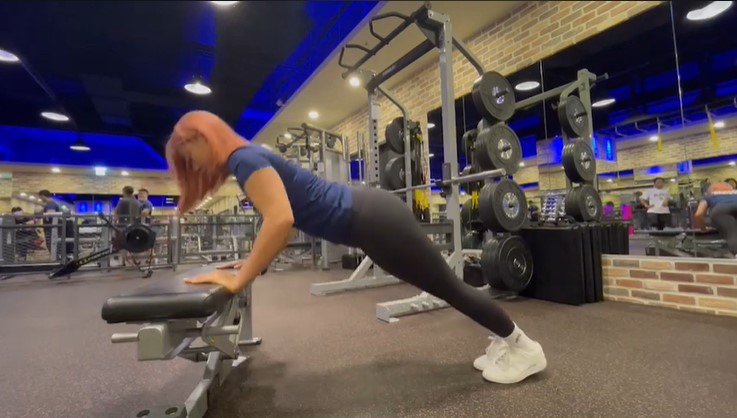 • 上斜伏地挺身: 15 下,將手放在床邊或桌子上,以伏地挺身的姿勢做準備